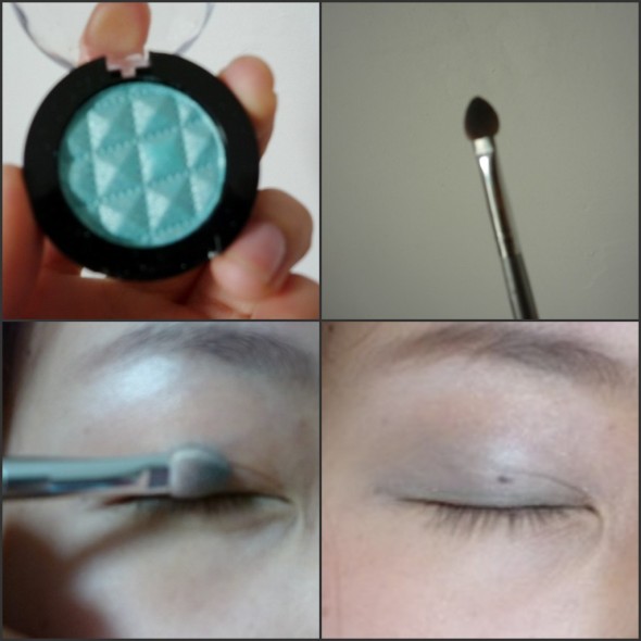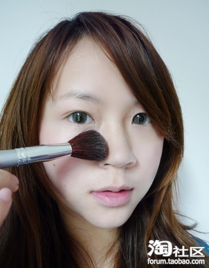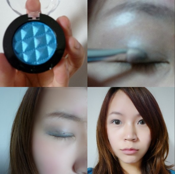 用棉刷在双眼皮褶以内用淡蓝色先打好底