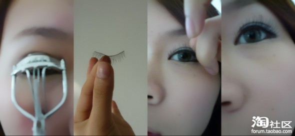 再用睫毛膏将本身睫毛和假睫毛刷在一起
