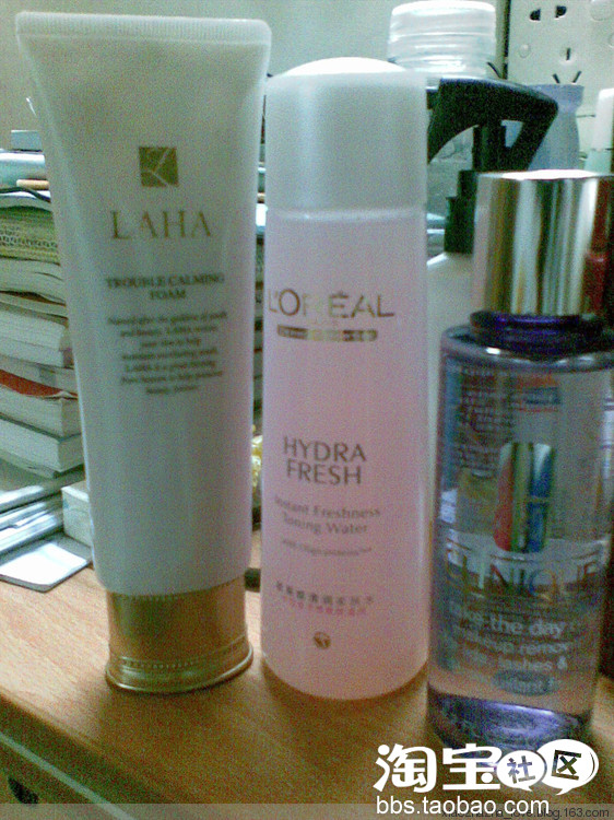 最左边那支是叫LAHA 的韩国洗面奶,是我一个亲戚给我的.这个淘宝有得卖喔.