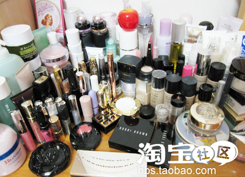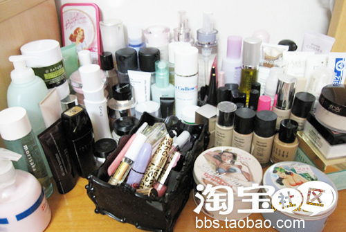 东西倒是挺多的,就是MM你的眼线画得怎么看起来那么怪?不用挑那么高啦~