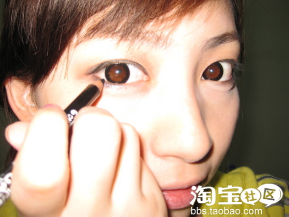 接下来画眼线,我用的依旧是dodo的眼线膏,用了很久了,呵呵,真的很好用……
