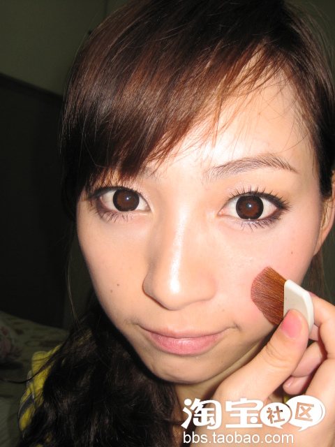 粉粉的腮红是日系妆的特点,接下来我们画腮红咯,腮红是在淘上淘的,VOV的,很粉很可爱^-^