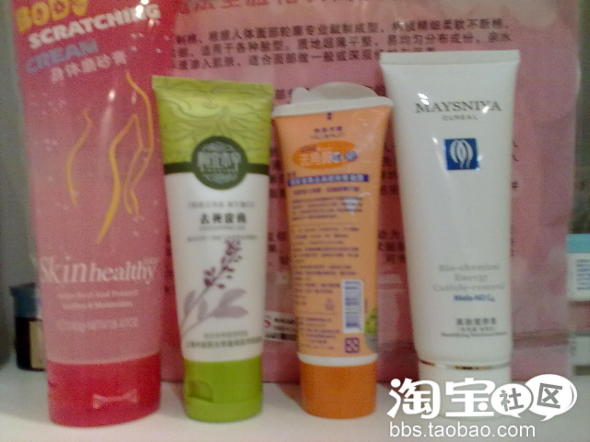 从左到右:贞采源的身体去角质,才9。9块。在屈臣氏买的。感觉还不错,里面有一些一粒一粒的也不知是什么东西,不过这么大一瓶用来弄身体感觉不会浪费。
