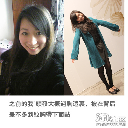 头发我高中毕业开始养,到大学四年差不多过胸的啦~大卷一直舍不得去剪,因为我感觉女生的头发养到一定的长度就长的很慢的,反正我没有超级好的身材~脸天生就有点圆,因为我骨架比较大啦`所以超级郁闷~一直想要自己的脸小点`问题它就是