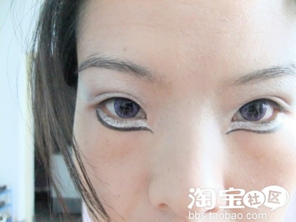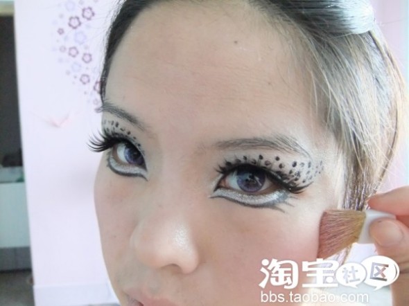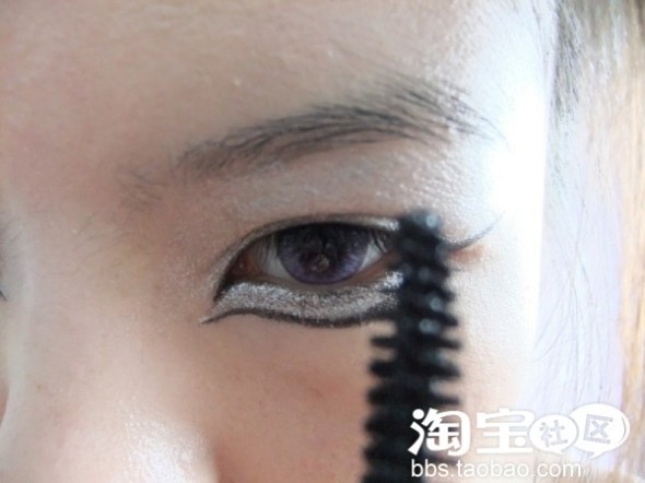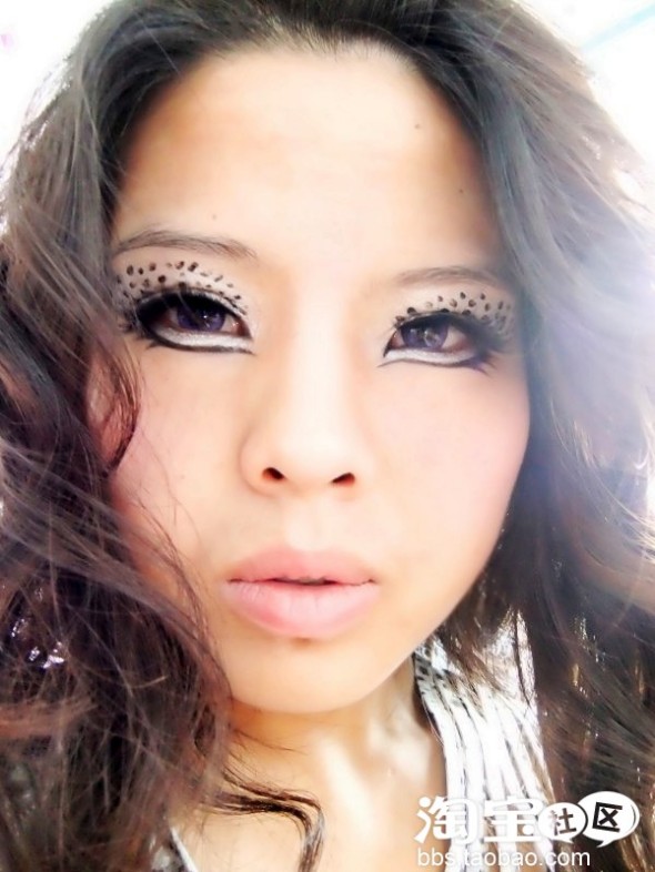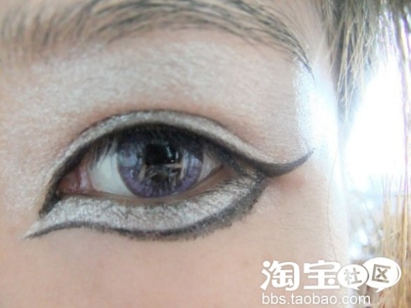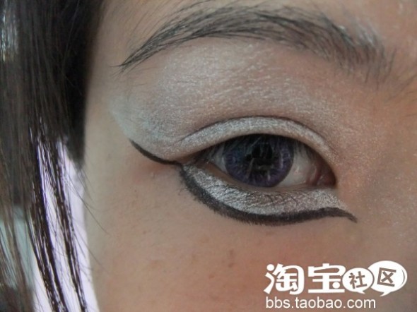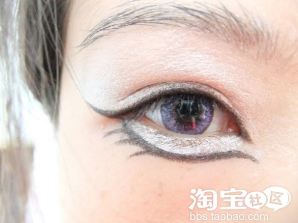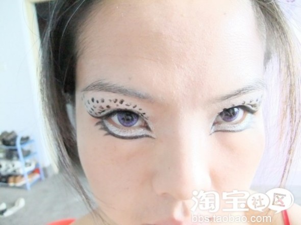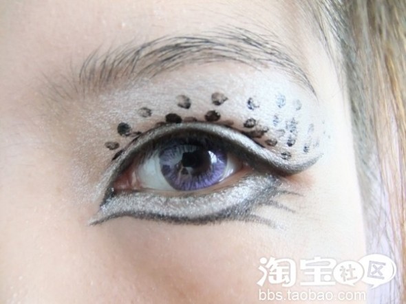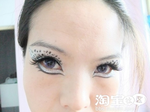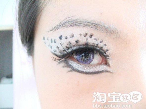 今年其实是很流行猫眼妆以及豹眼妆的,不过猫眼妆已经有很多美女发过了,于是俺冥思苦想,自创银色豹眼妆