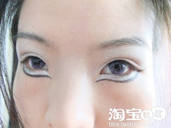 再用睫毛膏刷一下,使真假睫毛融合,效果图: