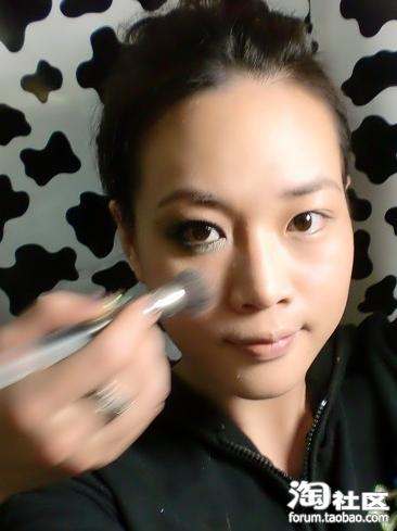 3.眼肚位置可以用粉撲印上較淺色的碎粉