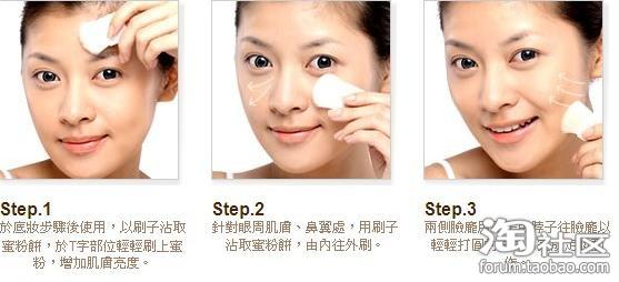 粉扑是这样用的,三个手指夹着,一下一下的搽到面上,可以是说印上去的,