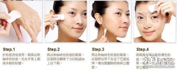 4.不要忘記在下巴及頸部掃上粉底,千萬別讓頸及面部呈兩種不同的顏色