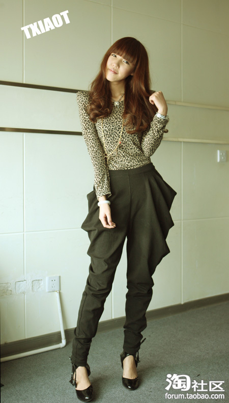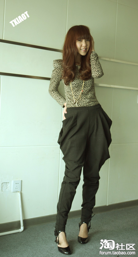 接下来 在给大家发两张造型搭配 豹纹连衣裙搭配今年大热的锥形裤 会是什么样的效果呢??请看下面。。。