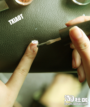 第一次DIY的MM可能有点棘手 因为胶干得太快 水钻又很小粒 不易拿 上面那只白色的小笔