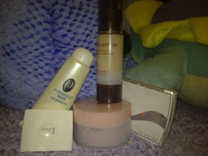 呃。。Dior的乾粉、泊美的隔離霜、泊美的散粉、KOSE的粉底液、美寶蓮的乾粉
