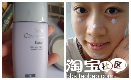 然后上隔离霜,我用的是VOV紫色,偶的肤色有点偏暗黄