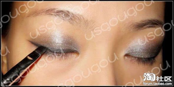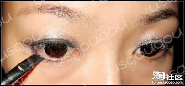 本帖的助威记录:助威总计 0 点 | 查看全部记录>>同样,下眼线靠近眼尾1/2处由外到内勾勒,越到中间越细。