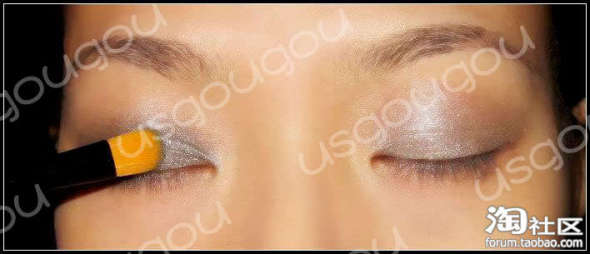 先上个底妆,然后开始在眼窝用银灰色眼影大范围的铺底