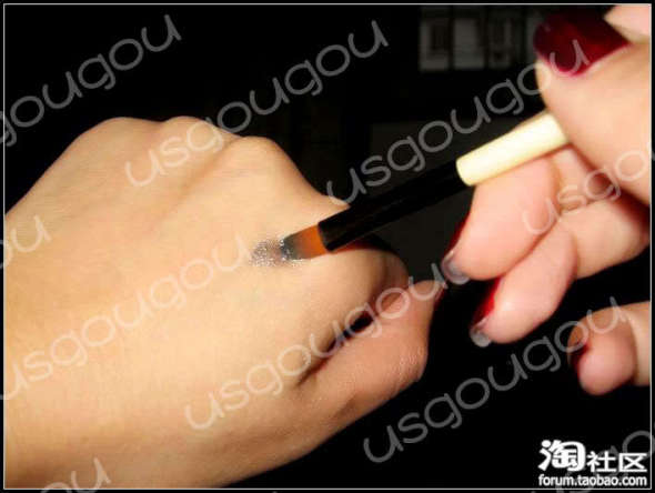 蘸些眼影粉然后在手背上调色,去掉多余的粉。
