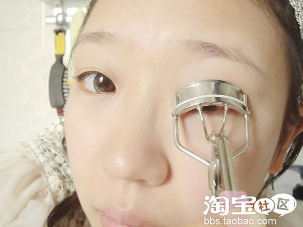 跟论坛的Jm学的,先把睫毛弯一下出弧度,再涂上胶