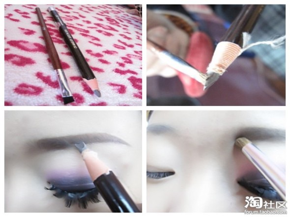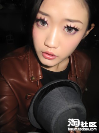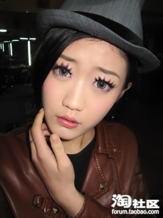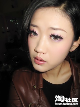 刷睫毛膏,让假睫毛的效果更加逼真。睫毛膏应该都会刷吧。。。记住要把下睫毛也刷了,呈Z字型刷。