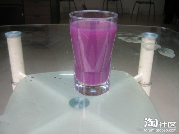 今天我还拍了一张照片,是我刚刚泡的紫薯汁,你们看看,诱人吧!
