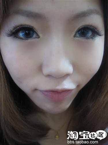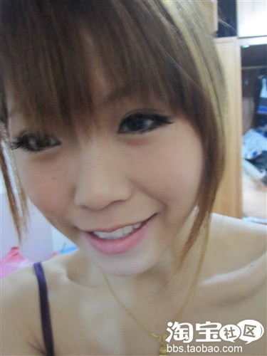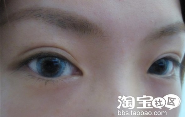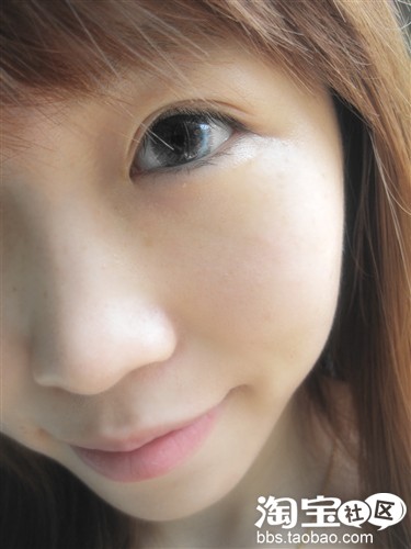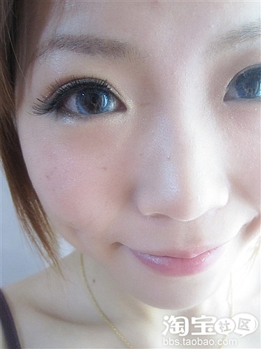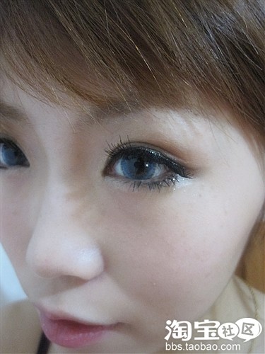 由于待会是回家去,老爸还在家等着俺吃饭,于是乎为了不伤及无辜,我把上睫毛给下了。可能是刘海的原因吧,所以也看不大出来差别。嘻嘻~睫毛膏刷刷刷几下就搞定。