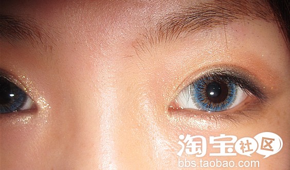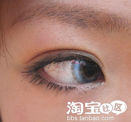 下面贴假睫毛,纠结再三~还是贴吧,一般不怎么贴假睫毛出门,除非夜间活动。感觉群众们夏天还是喜欢清爽的感觉吧。这图里的假睫毛是分簇的,抱歉!惭愧。俺用的上睫毛忘记拍了,不过就是很普通的那种啦。下睫毛就是这盒子里上面贴的那平平的两道,上次用了,这次循环。不过要修剪成一小段一小段的。我超喜欢这张图,哈哈~不过大家有木有发现呀~我只贴了上睫毛还有一只眼睛的下睫毛就拍了,~~~~~~当时拍照那叫一个疯狂,希望多点图给大家看清楚。步骤就省略,其实很简单,保持假睫毛原有的弧度,闭上一支眼,不过睁开也行。贴!OK。和画眼线一样多练习就好。我也是新手呀~~