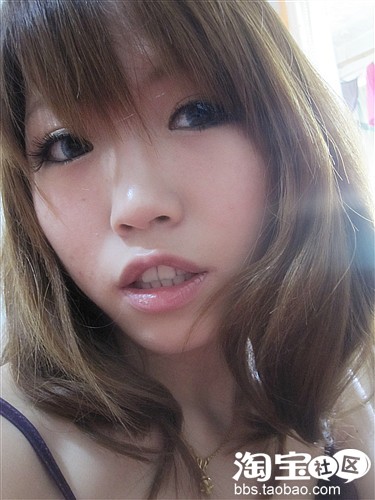 浓密的睫毛,腮红~平刘海~粉色嘴唇。俺也GAGA了一把。没她夸张,下次我也要画她的妆,希望有人敢看就好。