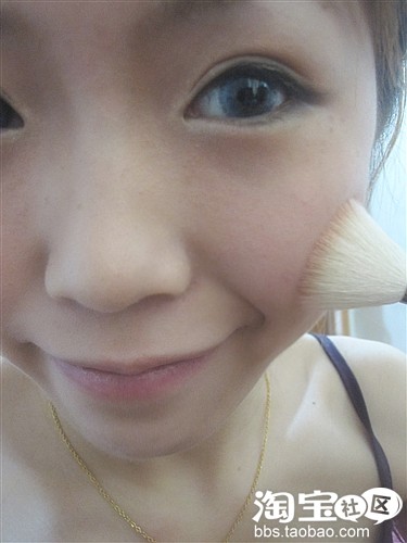 我终于回家了。开始观察自己的小脸蛋。基本上眼妆完好,腮红本来就不明显现在更加无形了~~~两颊的粉还好还好,(我今天没定妆的)于是~~~我的东西还是挺适合我的,并且效果良好。