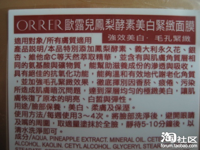 四、台湾欧露儿凤梨酵素美白细致面膜