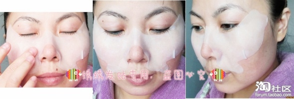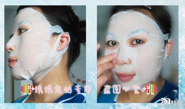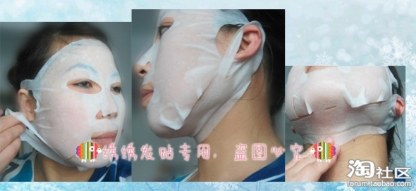 不是很贴合脸部,生产的时候多裁切几刀就好啦。十分钟后取下,脸上可以看出很润。