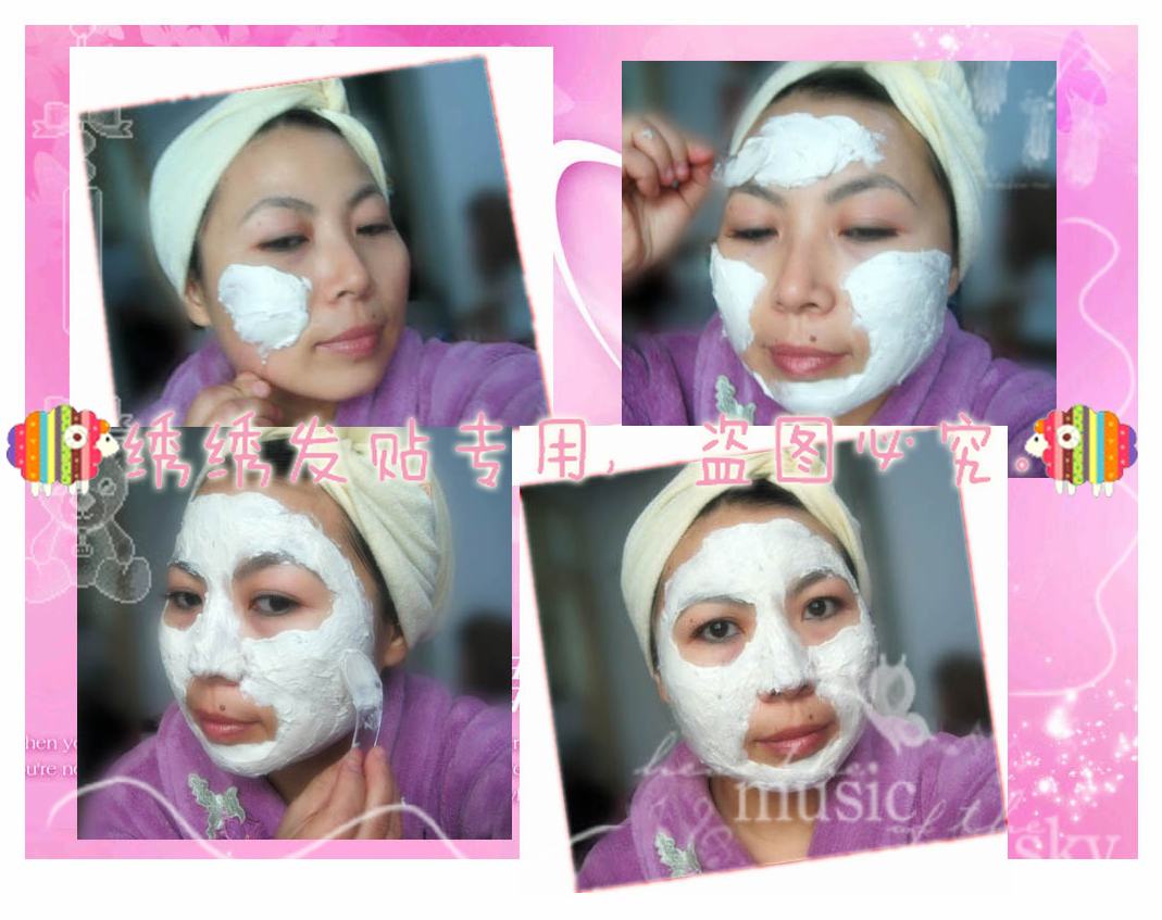 放在鼻子下面再闻一下,很细腻的、带有丝丝缕缕醇厚的味道,喜欢ING。这种酸酸甜甜的味道突然勾起了我的食欲呢,恍惚间觉得手里搅拌的是冰激凌。本人的老习惯,面膜之前先上一层润肤水或保湿精华,这样补水效果加倍,这招是“女人我最大”里那个牛耳教的。好,开始往脸上涂抹面膜。