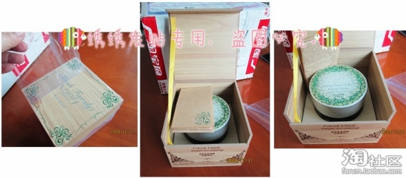 到木盒装面膜,精美,高档的品质不言而喻。木盒子上的花纹漂亮哦,