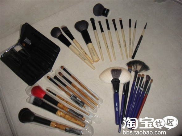 嘿嘿 刷子大集合 那套紫色的 是我在学化妆的时候买的 好多年了 不是专柜货 所以比较便宜 嘿嘿就是看着颜色漂亮所以买的 那两套均来自专柜 芭比布朗 简直是 贵的要命啊 但是也不要再网上买假的 宁可去柜台买些二流的