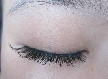 因为这款睫毛比较翘,所以带的时候不需要拿的很斜,要不会翻上去的,这个角度看,睫毛真的很美。