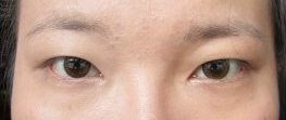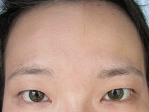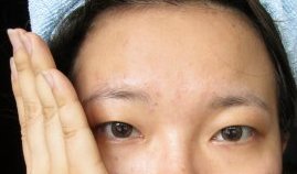 肤质混合偏油,肤色暗黄,不均匀。粉刺痘痘。睫毛又短又硬,单眼皮无神至极。