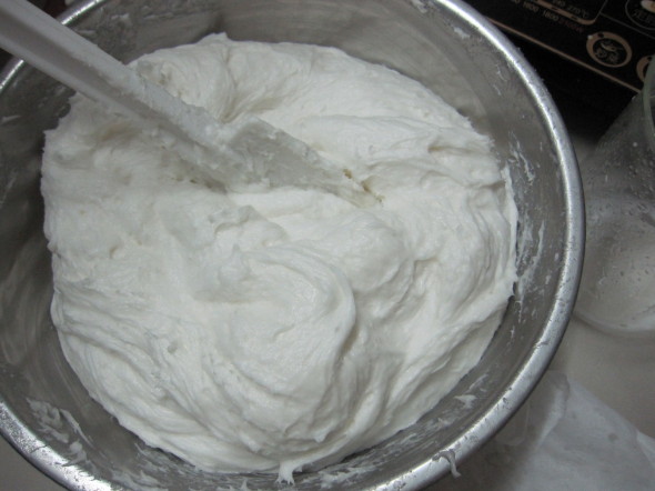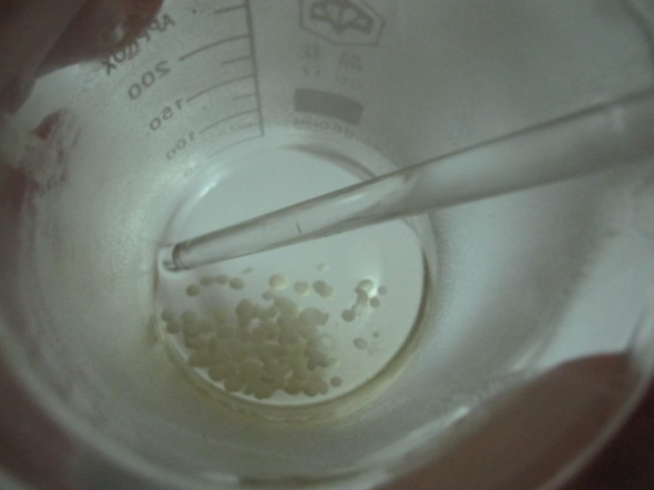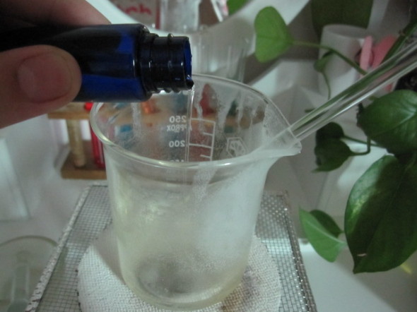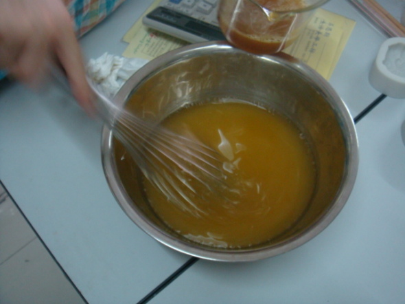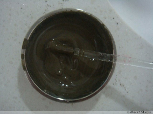 3.把步骤2里做完的液体慢慢倒入步骤1的杯子里,并一直搅拌,让它们变得很稠为止。