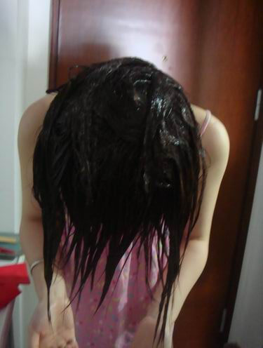 匀附着在发丝各处;梳头的方向为从上而下。