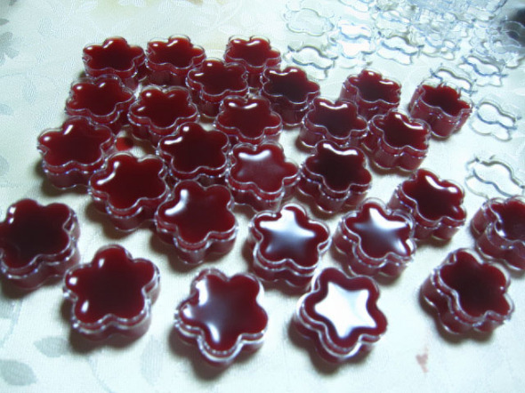 步骤:油碱在40度温度下混合,搅拌约一小时后,皂液粘稠后,倒入硅胶模,48小时后脱模,阴凉通风晾置2个月后完全熟成后使用