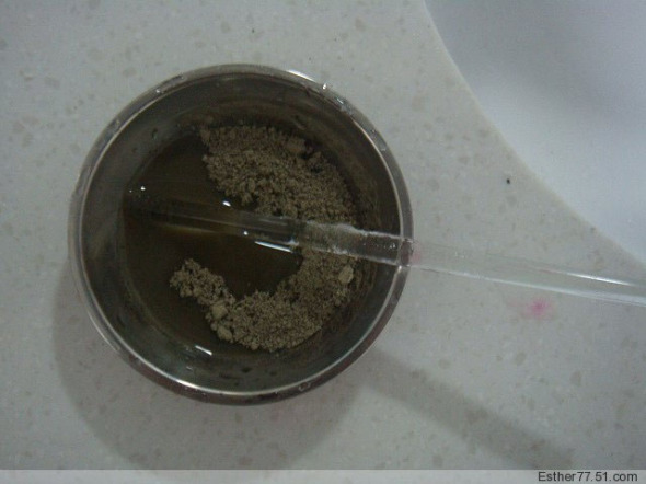 步骤:将绿石泥调和甘油及少许矿泉水后调成糊状即可,将调制好的面膜取适量抹于脸部,避开眼睛及唇部,10到15分后用温水将脸洗净即可