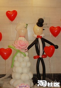 我在去年的一次结婚新品体验会上看到一种气球做的新郎新娘很好玩的