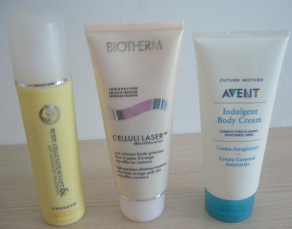 十月天使的去妊娠纹,据说带点纤体,碧欧泉纤体乳,新安怡身体乳,有助于防妊娠纹,都没好好用