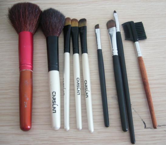 1腮红刷,2散粉、高光刷,3、4、5眼影刷,6眉粉刷,7遮瑕膏刷,8眼线膏刷,9眉毛刷,卡姿兰的刷刷很好用