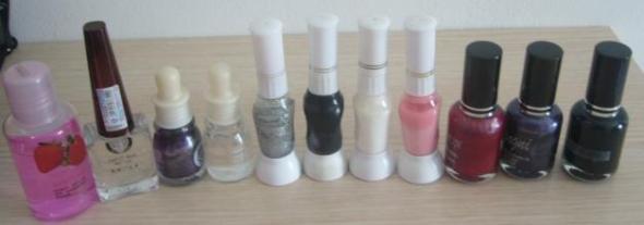 后一排:1依泉喷雾,喷嘴做的相当好,喷出来的水很匀、很细,2、3是美宝莲的洗面奶,4、5、6兰芝的精华,还没开封,7是兰芝的卸妆油,目前刚开始用,8白色小瓶是兰芝美白精华,也挺好的,9是雅诗兰黛的红石榴精华,大牌就是大牌,很好用,10是倩碧的卸妆,不是最理想的卸妆产品,11是倩碧的黄油,12是倩碧的防晒,没什么好说的,前一排是赠送的迪奥的两个精华和美宝莲的两个精华,没有用,暂不评价