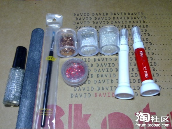 下面一张是美甲的工具,最右边两种可以没有的。呵呵。是像修正液一样的笔。