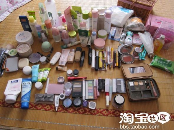 天哪 那么多化妆品 楼主都可以摆个柜台了 呵呵,MM很漂亮的啊