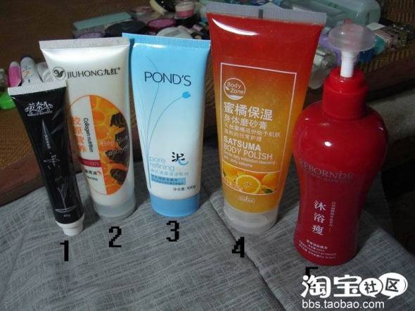 4、实体店败的,非常像是BODY SHOP的山寨版,当时没看清楚,觉得便宜就买了,很大的一只,既去死皮又能清洁的,还算好用。而且淡淡的蜜桔香很是喜欢,用完之后我就可以用沐浴瘦了。去了死皮估计吸收会更好吧~