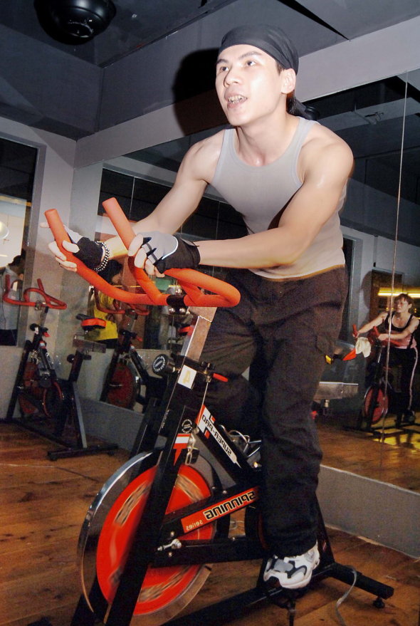 下面的图就是本地的一位专业的spinning教练喔,是不是很帅气呢?皮肤好好,身材也好好,这些是不是就是spinning运动的效果呢?