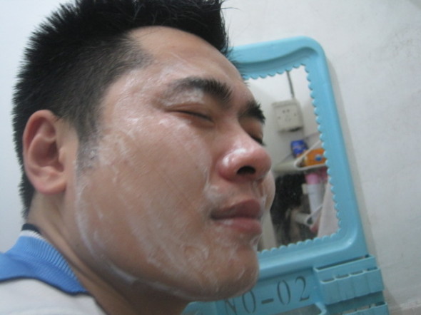擦在脸上,很多泡泡,峰哥比较喜欢先挤在掌心,揉出泡泡,在擦到脸上去
