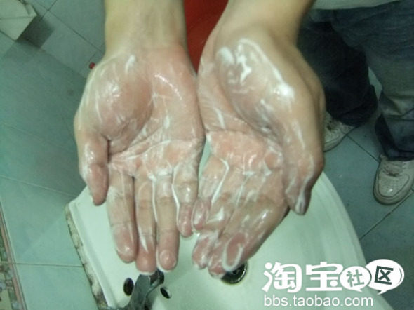 取适量洁面乳在手中打起丰富的泡沫,泡沫密度呈水分充裕越细腻越好,尽量可以避免对皮肤造成伤害的哦!看白色泡泡非常多!