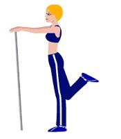 【动作一】请你双腿并拢直立.手扶椅背.然后向后上方抬起左小腿.