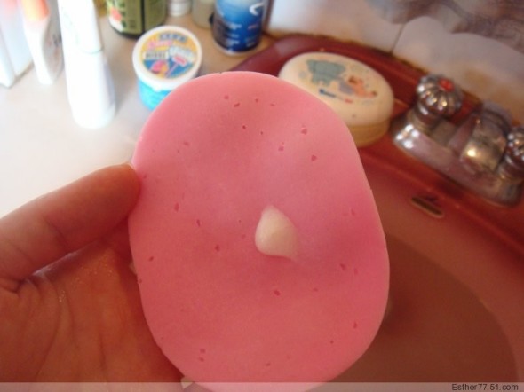 步骤2.用手揉搓净肤棉,使之产生泡沫。